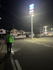 パトロールして思ったことは、周りは真っ暗なのですが、部活帰りと思われる中学生と結構会いました。中学校の前の道路は狭い道で、夜間に車で走行していると、歩行者が